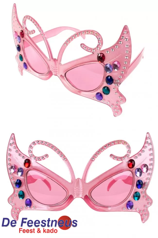Bril vlinder roze met diamantjes