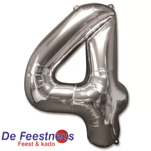 Folieballon cijfer 4 – Zilver – 92cm