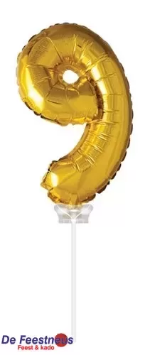 Folie ballon “9“ Goud 40cm met stokje