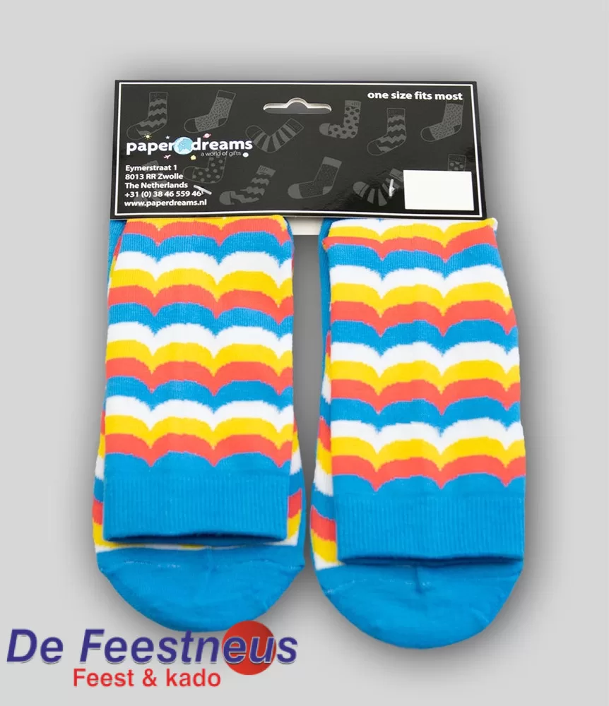 De sokken zijn gemaakt van katoen en hebben de maat ‘one size fits most.