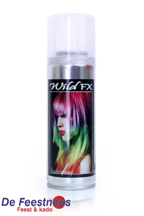 Verander je haarkleur heel makkelijk met deze tijdelijke haarlak met glitters in de kleur zilver! Het is makkelijk weg te wassen met water en shampoo. Kleur je haar voor Carnaval, een kostuum partij, of een themafeest.