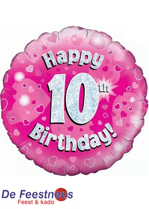 Folieballon verjaardag – Happy 10th Birthday – roze – 18 inch Ø 45cm
