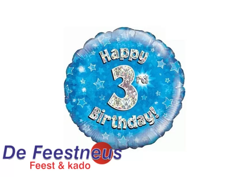 Folieballon verjaardag – Happy 3rd Birthday – Blauw – 18 inch Ø 45cm