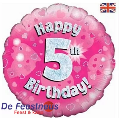 Folieballon verjaardag – Happy 5rd Birthday – Roze – 18 inch Ø 45 cm
