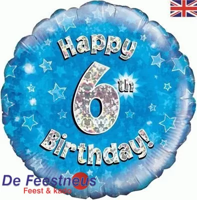 Folieballon – Happy 6rd Birthday – Blauw – 18 inch Ø 45cm