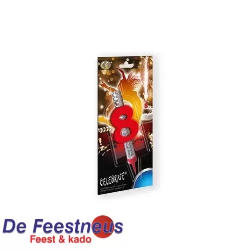 Feest ijsfontein met de vorm van het cijfer 8. Leuk voor op het gebak of een ijstaart. Brandtijd ca. 45 seconden. De ijsfontein is geschikt voor gebruik binnenshuis. Inclusief handig aansteekstokje.