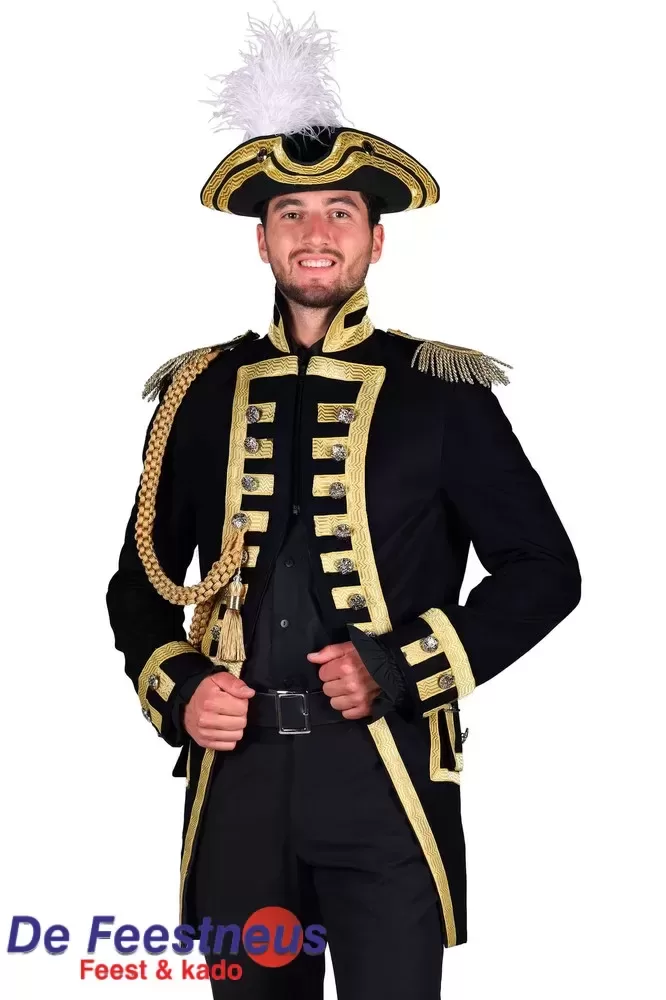 Deze jas heeft gouden schouder epauletten.