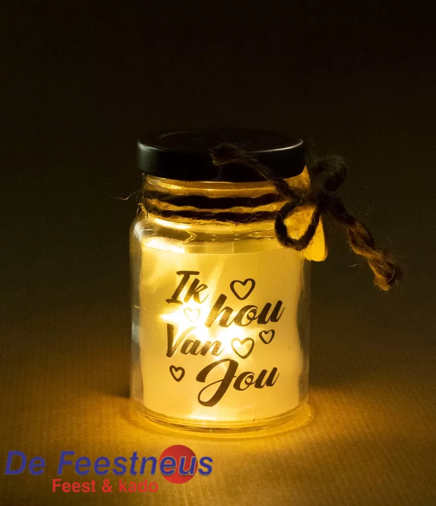 Deze leuke Star Lights zijn glazen potjes met een leuke tekst met een lampje er in. Het LED lampje werkt op batterijen, deze worden meegeleverd. Elk Star light glazen potje heeft een speciale boodschap die oplicht zodra je het led lampje aanzet met het knopje onder de dop.