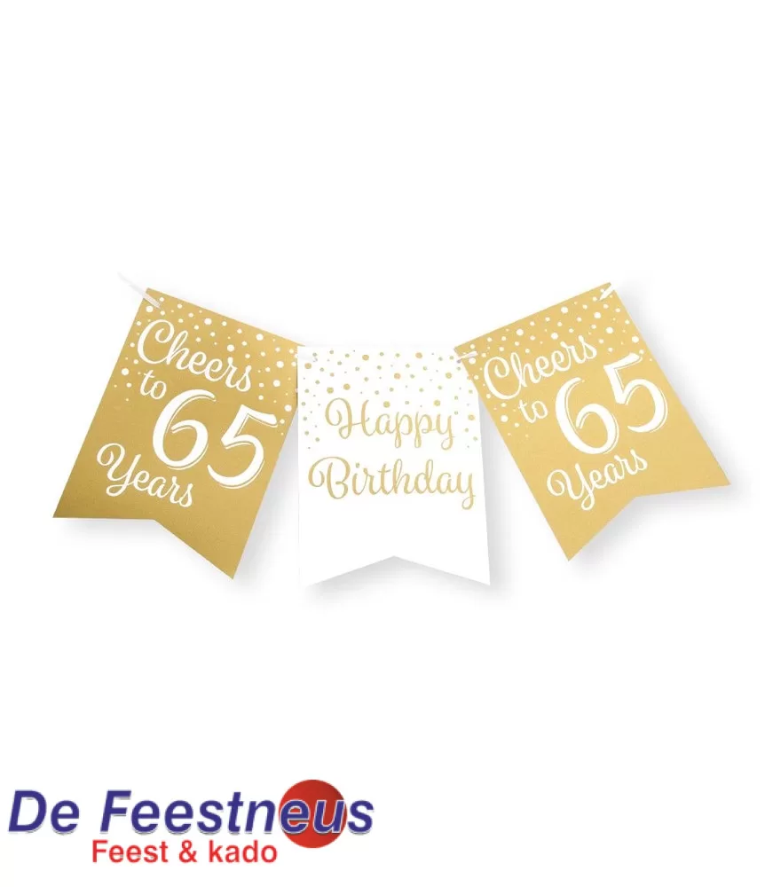 Vier jij binnenkort je 65e verjaardag? Dan kunnen deze leuke vlaggetjes niet ontbreken op je feest. Zo ziet je kamer er meteen een stuk vrolijker uit!