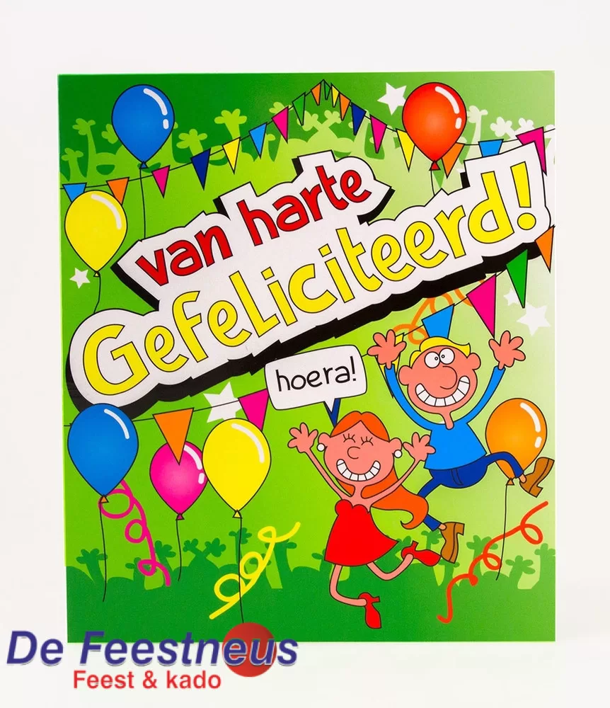 Vrolijke wenskaart in de vorm van een verkeersbord. De wenskaart komt keurig in een transparant plasticje verpakt binnen. De binnenkant is blanco. Afmeting: 14 cm x16 cm, inclusief enveloppe.