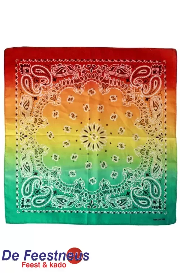 vierkante bandana met paisley print met kleurverloop rood, geel en groen